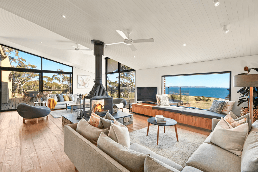 A true beachside masterpiece, ‘Restaway’ offers refined coastal living with panoramic views and seamless indoor-outdoor flow. Now sold, this architect-designed retreat delivered comfort, connection, and direct access to Tasmania’s pristine shoreline.